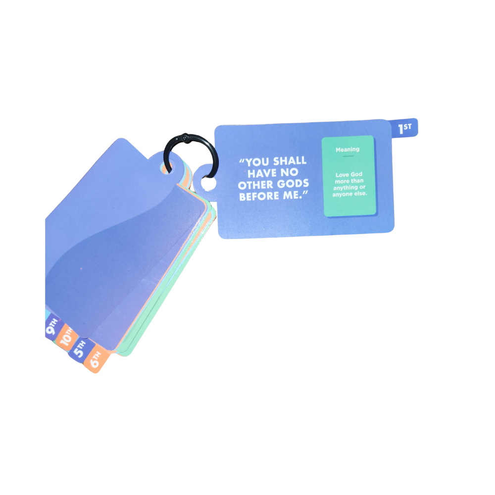 ~Top 50 Favorite Bible Verses Cards-On-A-Ring - this religious study aid includes 50 Bible verses that are important for anyone to know and makes a great stocking stuffer or college care package filler. Each set includes 50 double-sided cards on a plastic ring. ~Attributes of God Cards-On-A-Ring - each little tag is printed with an attribute of God, and they all fit on one handy ring. ~Names of Jesus Cards-On-A-Ring - help kids learn about the many names of Jesus with these exciting ring card sets! Each ring comes with fifteen colorful cards that features a Bible verse, name of Jesus and inspirational imagery. ~Ten Commandments Cards-On-A-Ring - each card lists a commandment and its' meaning, on the reverse side is a detailed explanation along with a list of 4 ways to obey that commandment. ~Books of the Bible Cards-On-A-Ring - each flashcard-styled information card teaches about each book of the Bible’s authors, themes and messages. ~Prayer Starter Cards-On-A-Ring - with these great Prayer Starter Cards on a Ring, it's easy to learn the thoughts and habits involved in daily prayer. For those young children that don't know where to start, these prayer prompts are an excellent teaching tool.