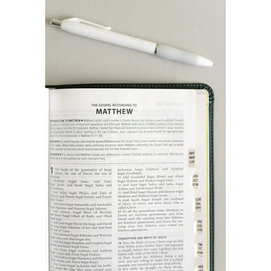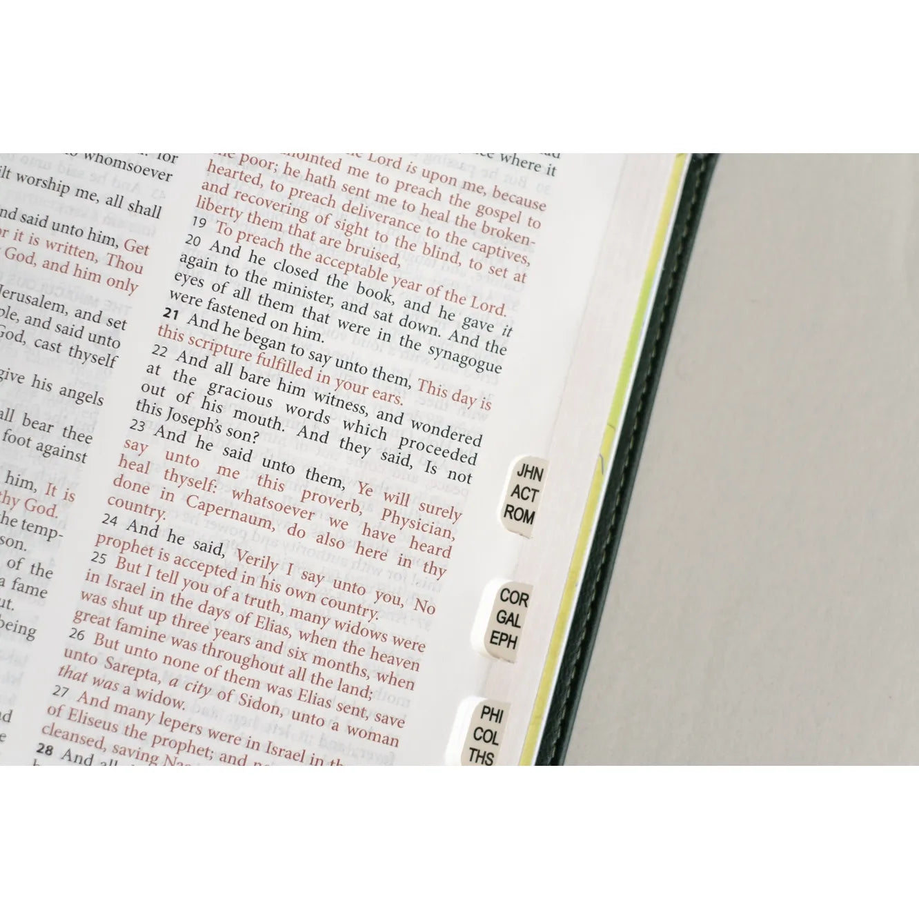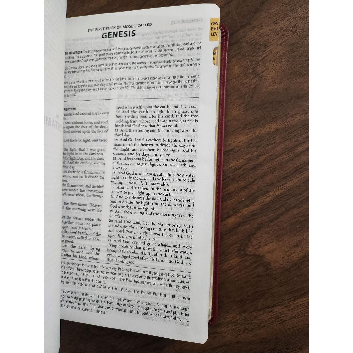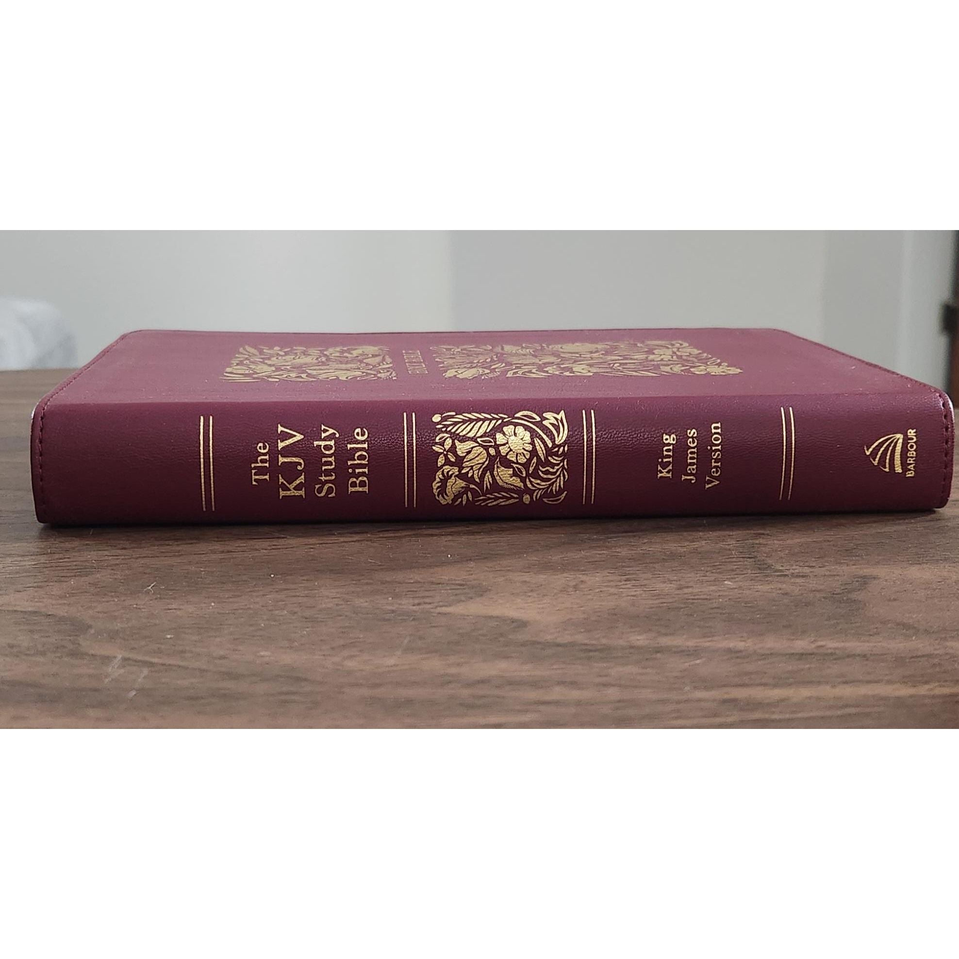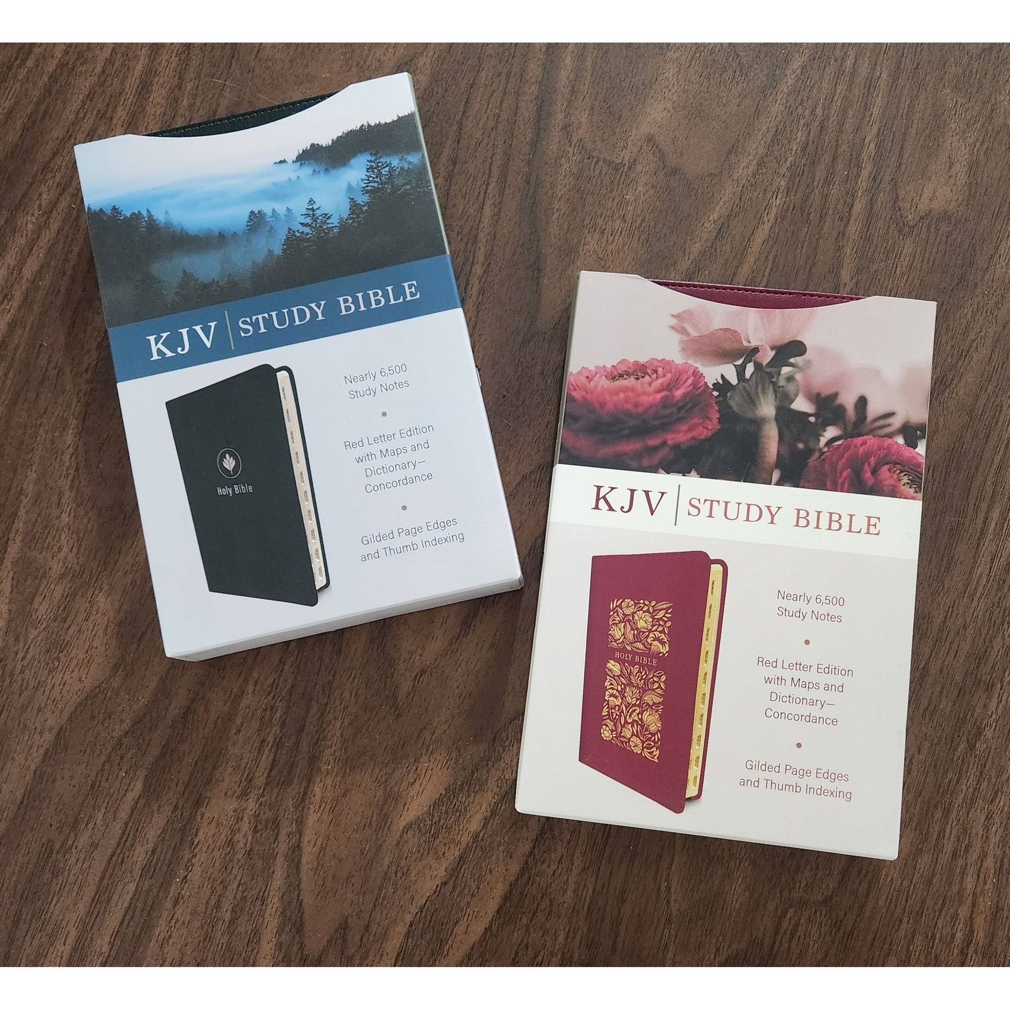 Find the Bible study helps you need in a handsome package you’ll appreciate—with The KJV Study Bible. Nearly 6,500 study notes offer unparalleled clarity on the hard-to-understand passages of scripture. Red letter edition with maps and dictionary-concordance. Gilded page edges and thumb indexing. Introductions to all 66 books. Flexible cover measuring 8.5 x 5.4 x 1.2 in.