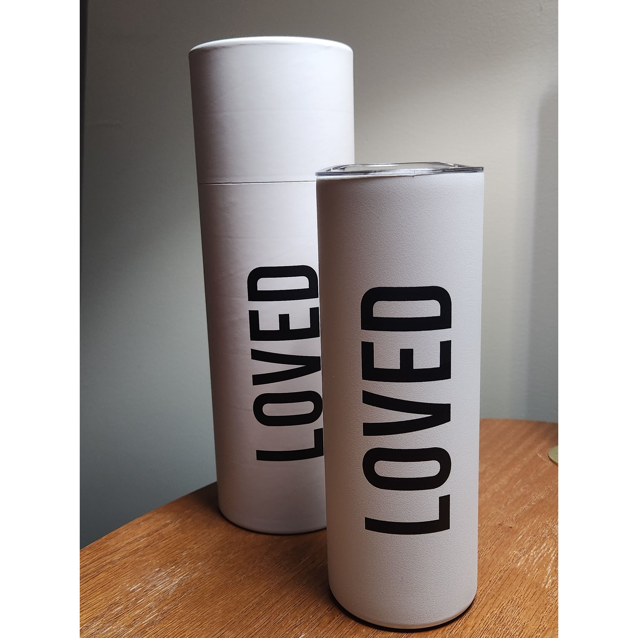Enjoy your favorite hot or cold beverages while on the go with this sleek tumbler. Fits in most cup holders for easy travel and hold 20 oz of your favorite drink. • Material: Stainless Steel, BPA free plastic • Size: 8.25" H, 20 oz • Care Instructions: Hand Wash Only * Comes in round gist box (shown).