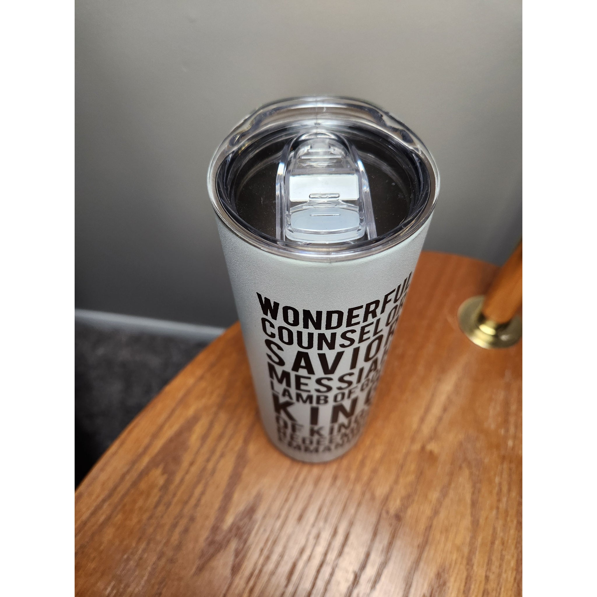 Enjoy your favorite hot or cold beverages while on the go with this sleek tumbler. Fits in most cup holders for easy travel and hold 20 oz of your favorite drink. • Material: Stainless Steel, BPA free plastic • Size: 8.25" H, 20 oz • Care Instructions: Hand Wash Only