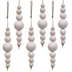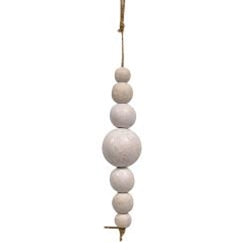 Our White Wooden Bead Ornaments on Jute are composed of a variety of different sized white wooden beads on a jute string. It comes ready to hang by a jute loop at the top and it has a distressed white finish that pairs with a range of decor styles. Measures 4.5" high by 1" wide.
